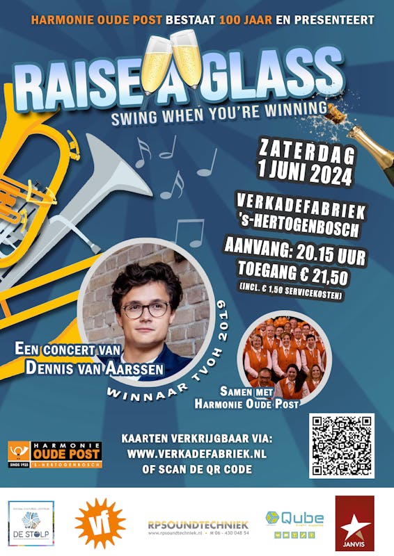 Harmonie Oude Post bestaat 100 jaar. In dat kader hebben ze niemand minder dan Dennis van Aarssen, winnaar The Voice of Holland in 2019, gestrikt voor een swingend concert op zaterdag 1 juni 2024 in de Verkadefabriek, Boschdijkstraat 45 te ’s-Hertogenbosch.