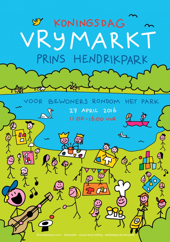 Heb je spullen die je niet meer gebruikt en wil je ze verkopen? Speel je een muziekinstrument en wil je dat andere mensen laten horen? Of wil je anderen verrassen met je act? Het kan allemaal op de vrijmarkt in het Prins Hendrikpark op Koningsdag. Gewoon in je eigen buurt. Ook als bezoekerben jevan harte welkom!
