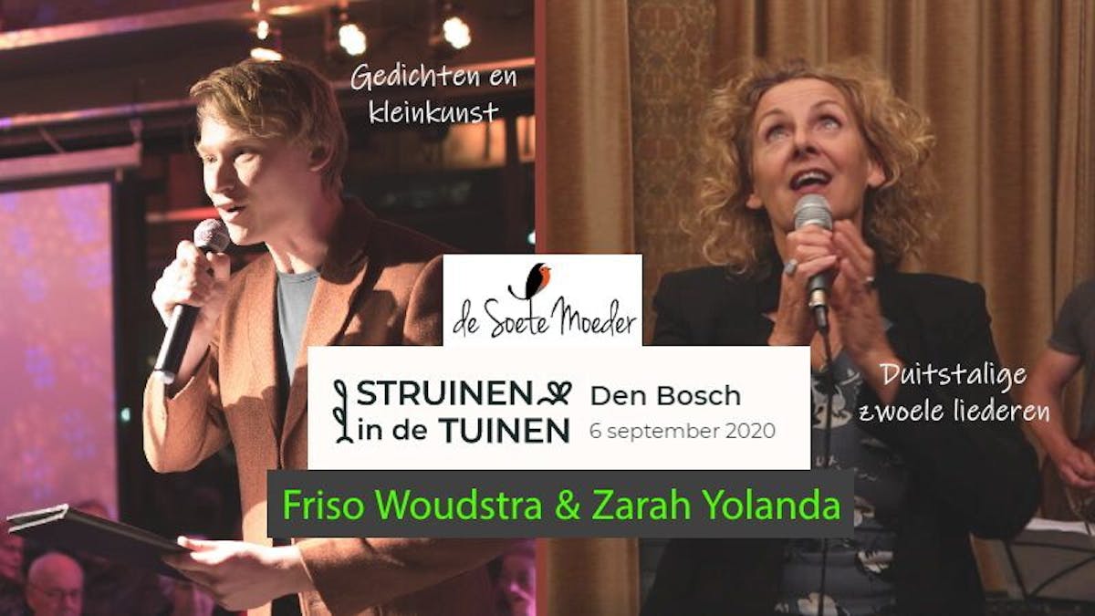 Wie komt er zondag struinen? Je komt hier dichter Friso Woudstra en zangeres Zarah Yolanda tegen! Zoek een lekker plekje uit, bestel een drankje en geniet!