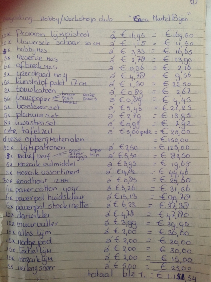 De kerngroep Buurtdemocratie vraagt uw advies over deze activiteit ! De sociale verbinding in de wijk zal er positief door worden beïnvloed, vooral door het permanente karakter van de hobbyclub. Deelnemers betalen ook een kleine bijdrage aan de crea-club waar zij deel van gaan uitmaken. Er wordt ook contact gezocht met andere mogelijke sponsoren. Ondanks het hoge bedrag van deze startsubsidie willen wij deze wijkactiviteit als een voorbeeld bij u aanbevelen.