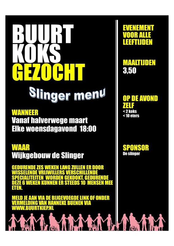 Wat een geweldig buurtdiner was dat in De Slinger , wij waanden ons in een sterren restaurant , hulde aan de buurt kok ! Het volgende buurtdiner is op 28 mei en vanaf maandag...