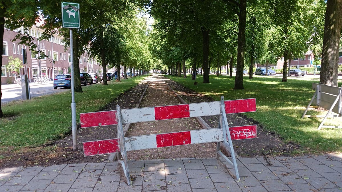 Er wordt gewerkt aan de van Lanschotlaan. Doel: wandelaars droge voeten te laten houden als het geregend heeft...
