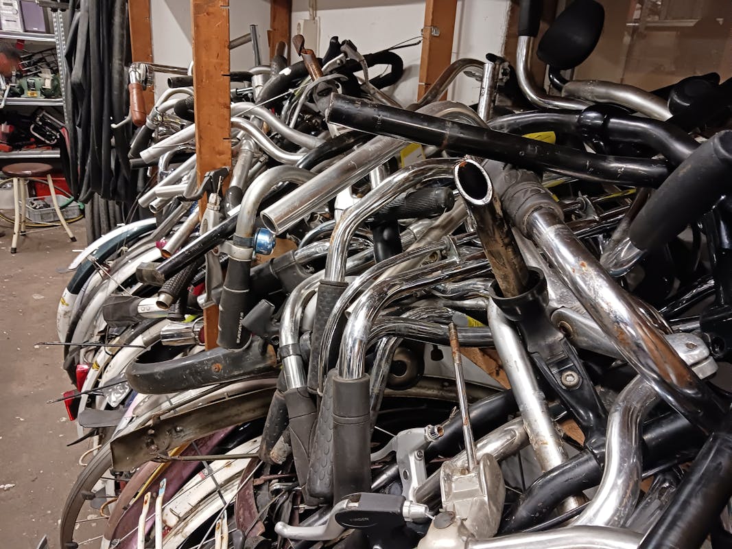 Een aantal fietsen die door de gemeente worden opgehaald komen bij Stichting Loods. Sommige fietsen zijn bruikbaar en worden klaargemaakt voor hergebruik. Van de fietsen die niet meer bruikbaar zijn, worden de nog bruikbare onderdelen gehaald en gesorteerd.