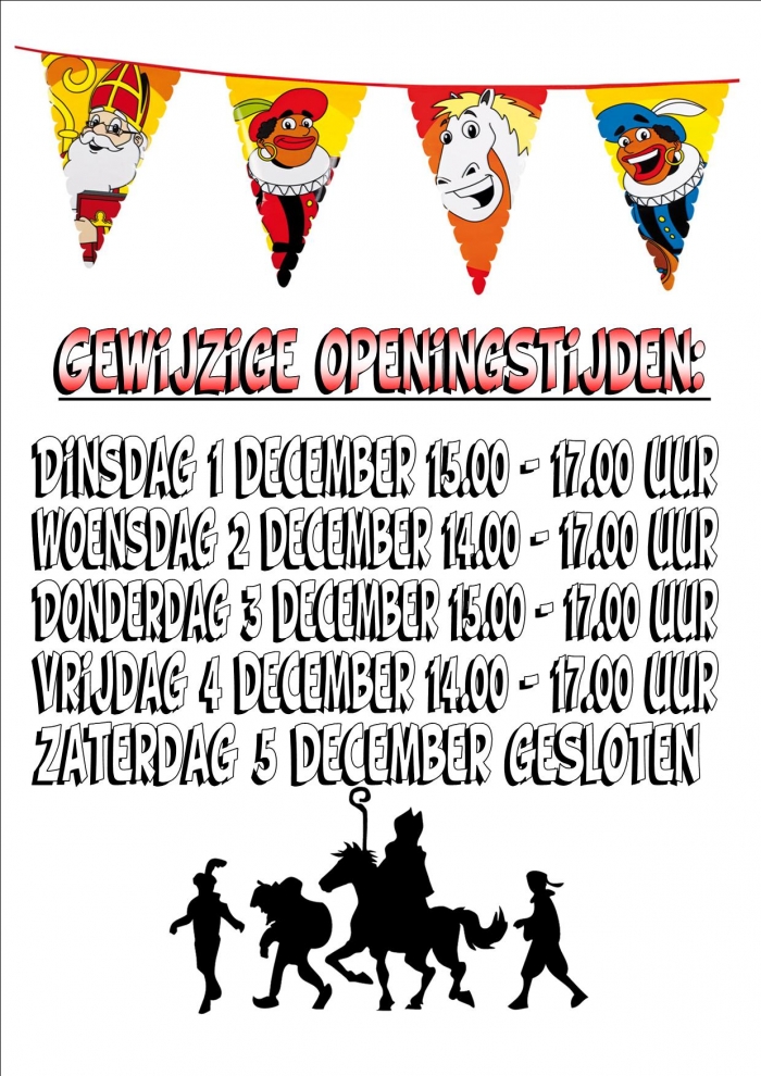 wij hebben volgende week gewijzigde openingstijden bij De Hobbel.