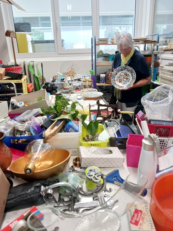 Foto 1: Hier zie je verschillende spullen die nog gesorteerd moeten worden.