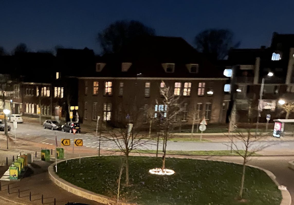 In potjes rond de boom midden op het Kapelaan Koopmansplein branden 's avonds lichtjes met de boodschap: stop de oorlog in Oekraïne!