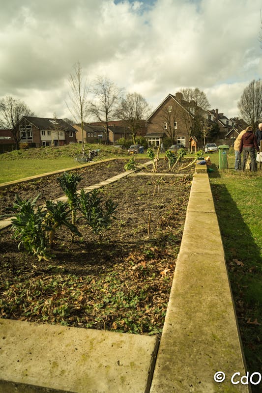 Deze bak wacht op het uitlopen van de plantjes en op de nieuw te zaaien en te planten groenten