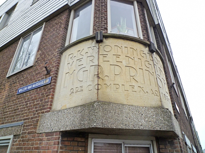 Van 1930 tot 2012 sierden de gevelstenen 'RK Woningbouw Vereeniging Mgr. Prinsen 2de Complex Ao 1930'. Deze woningbouwvereniging was een voorloper van Zayaz en bedoeld voor katholieke huurders.