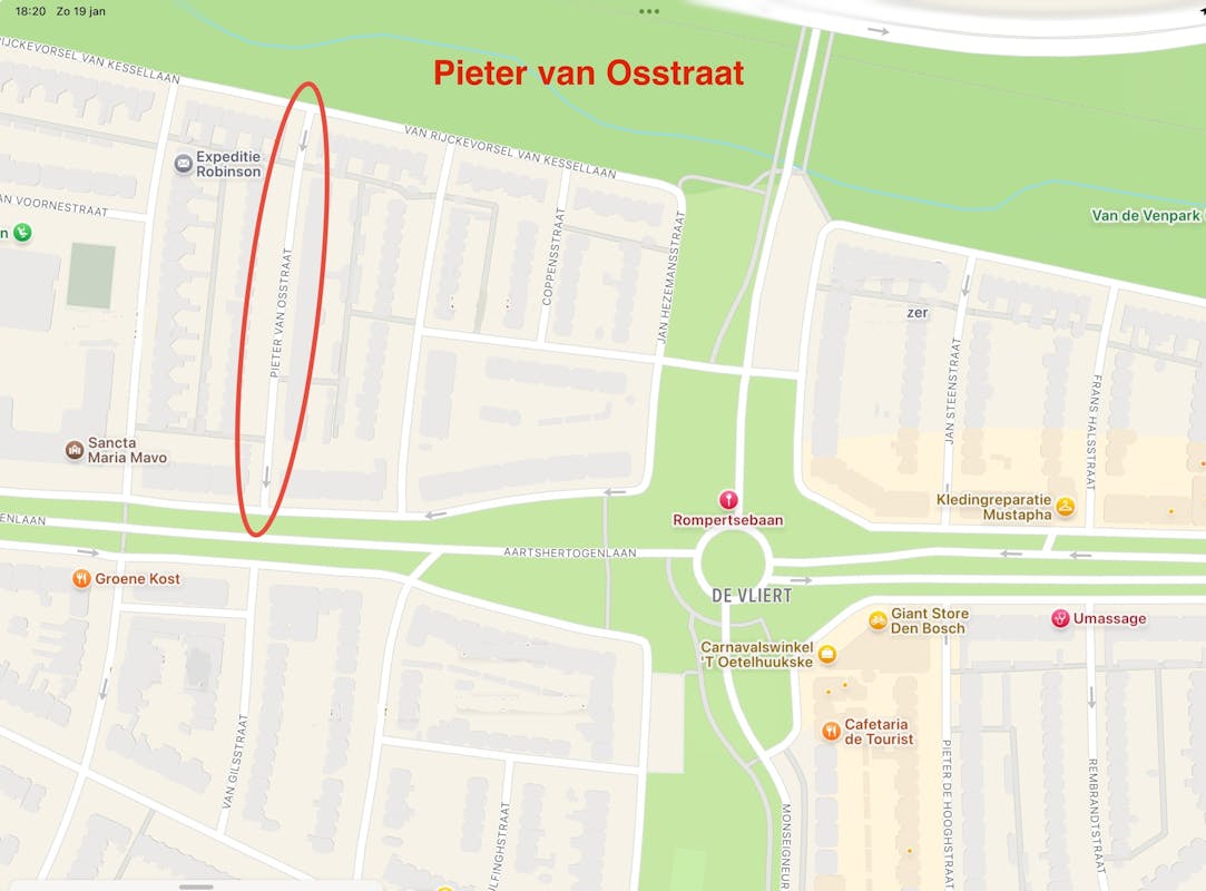Op 27 juli 1943 besloot de gemeenteraad een van de straten op de Vliert te vernoemen naar de geschiedschrijver Pieter van Os. Pieter (Peter van Os) is geboren in Oss midden 15e eeuw en overleed op 2 december 1542. Vermoedelijk verhuisde het gezin van Pieter rond 1480 naar onze stad zoals velen Ossenaren, in verband met de veiligheid, Vanuit Grave overvielen de Geldersen rond Vastenavond in dat jaar Oss, dat zij grotendeel platbrandden.