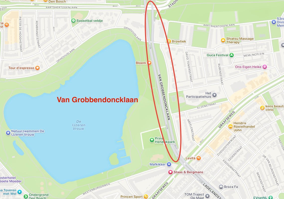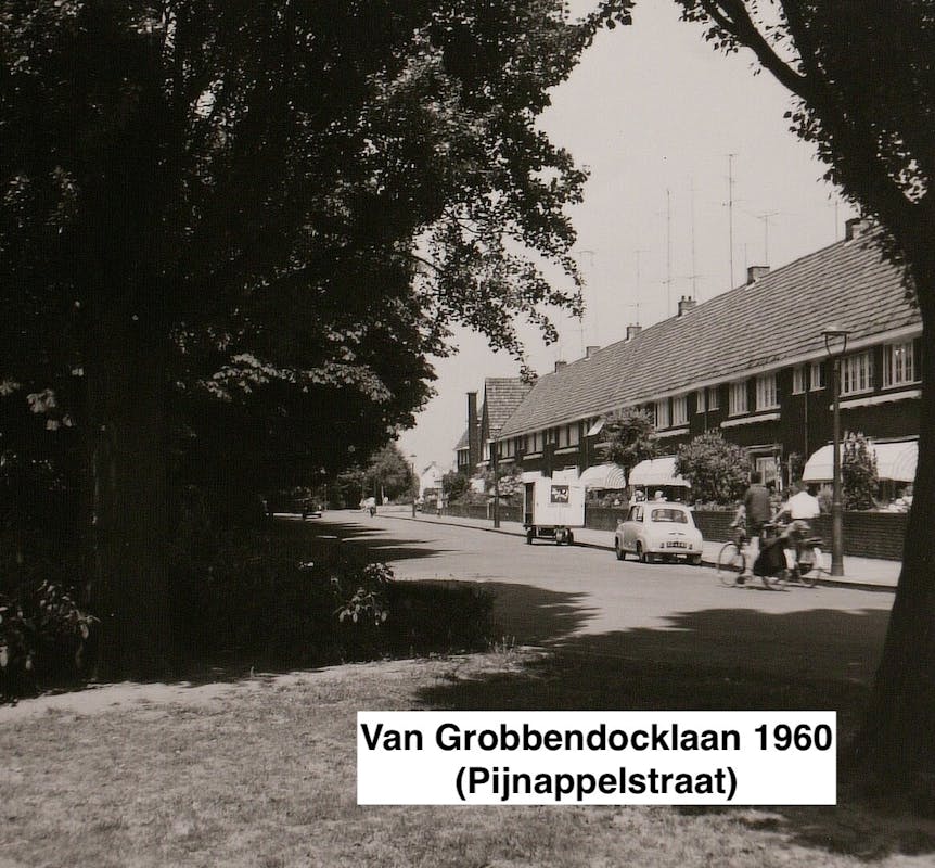De “van Grobbendoncklaan” is tezamen met de Bruistensingel de grensstraat aan de oostzijde van onze wijk met de Graafsebuurt. De stad had eerder een Grobbendonckstraat gekend (vanaf 1898 tot 1945). Deze liep van de Havenstraat naar het Emmaplein (op 't Zand). Bij de bevrijding van de stad in 1944 werden de huizen grotendeels verwoest, alleen het protestantse kerkgebouw Bethel (nu Emmaplein 17) kwam ongeschonden uit de strijd. De straat werd niet meer herbouwd. In plaats daarvan werd in 1945 de bestaande Pijnappelstraat herbenoemd tot Van Grobbendoncklaan. Het was ook wat verwarrend, er was tenslotte ook al een Pijnappelschepoort (zijstraatje van het Hinthamerend). De Ophoviuslaan werd daarop ingekort tot de Pieter Breughelstraat. De straat liep oorspronkelijk door in een bocht tot aan de Elzenstraat. Bij de uitbreidingen in Noord (1977) werd de Van Grobbendoncklaan vervolgens verlengt richting Noord. Vanaf de Aartshertogenlaan kreeg de straat de naam Bruistensingel. Het is wat verwarrend bij elkaar, Ik hoop dat jullie het nog kunnen volgen 😃.