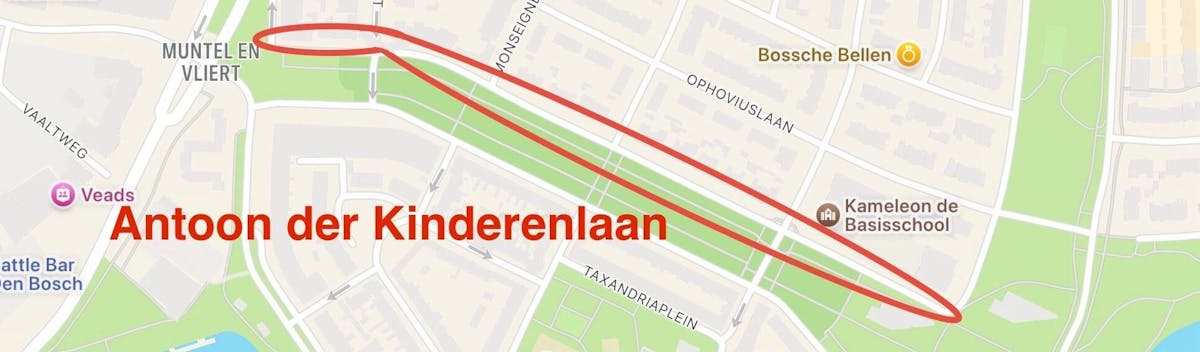 Een straat op de grens tussen de Vliert en de Muntel.  Maar is het nu Antoon der Kinderen of Antoon Derkinderen?